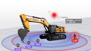 AI検知付き全方位画面モニタを車載にに搭載し、工事車両などの巻き込み事故防止、危険範囲内立入り事故防止などの警戒システムです。