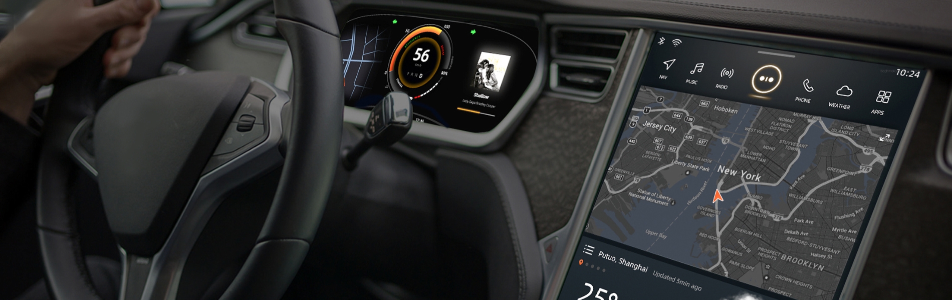 ドライバーの視界に自然に溶け込む形で情報を表示する先進的なヘッドアップディスプレイ技術です。