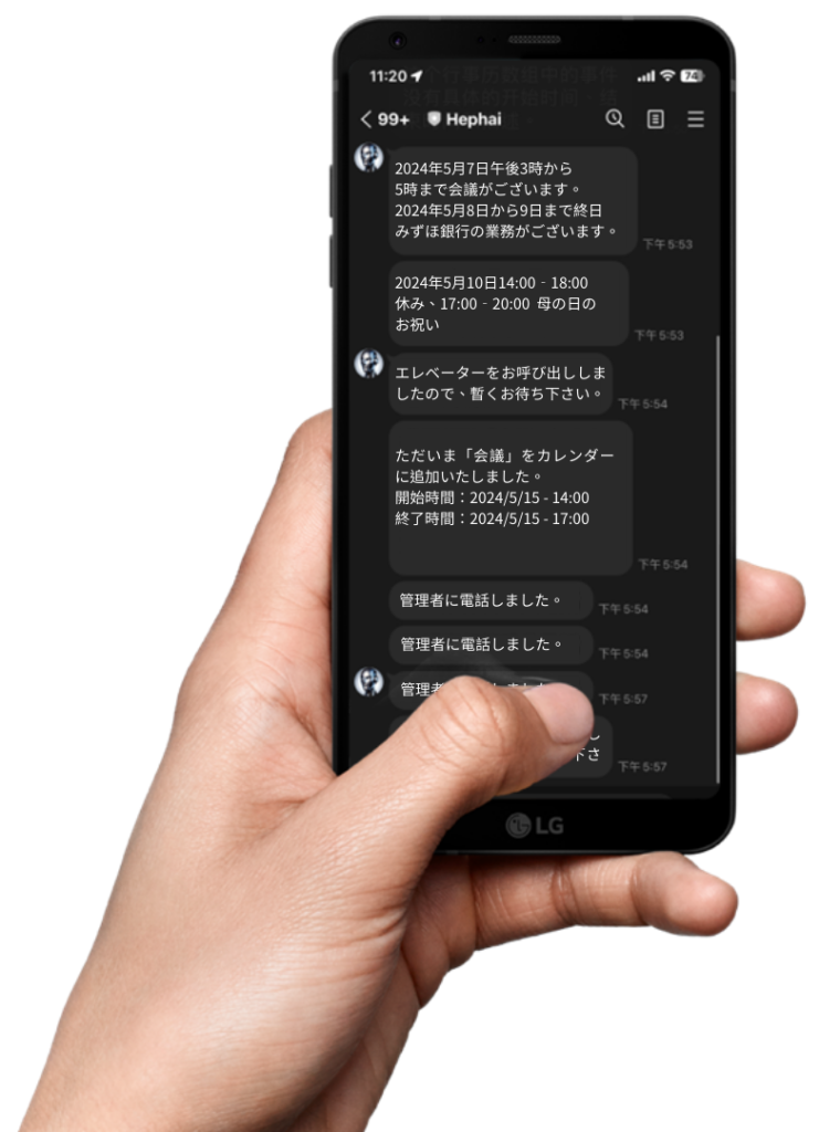 専属アシスタントで管理人に電話することで仕事の調整や、スケジュール管理が可能です。